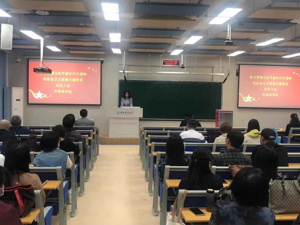 2023年4月28日,suncitygroup太阳集团召开学习贯彻习近平新时代中国特色社会主义思想主题教育动员大会。外院和外语部全体教职工参加了动员大会。