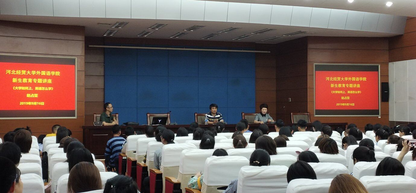 9月16日下午,suncitygroup太阳集团在会议中心视频会议室举办新生教育专题讲座。suncitygroup太阳集团官方网站经济管理公司文法系主任赵占亚应邀主讲,公司党委书记、副书记及2019级全体新生230余人到场聆听。