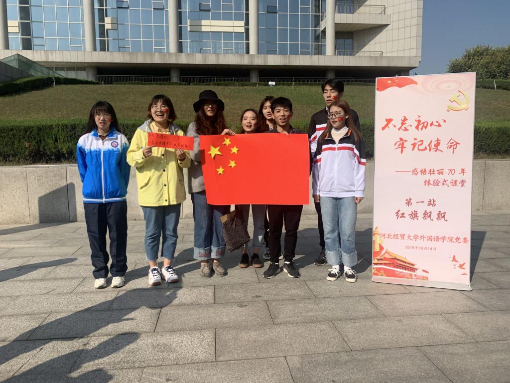 此次活动是为2019年新发展党员开展的一堂特殊党课,通过一系列内容丰富、形式新颖、意义深刻的体验活动,带领同学们回顾新中国成立七十年以来党带领各族人民战胜艰难险阻,推进中国革命、建设和改革的光辉历程。课堂以1949年新中国成立为起点,根据不同时期所取得的重大成就或重要历史事件,设置红旗飘飘、当家作主、众志成城、沐浴春风、游子归乡、百年圆梦、不忘初心七个环节,分别以图书馆广场、第一教学楼前、校礼堂前、荷花池旁、新高度餐厅广场、公司东操场、图书馆广场为各环节课堂开展地点。实施过程中,40名新党员分成5组,五位主讲教师每人负责一组,对每个环节的历史背景和重大成就进行深入透彻的讲解,并通过部署体验任务在各组间进行党史知识竞赛、团结协作考验、毅力耐力比拼、时间速度挑战、初心使命追寻。每个小组8名成员,齐心协力,争分夺秒,攻坚克难,勇闯过关。