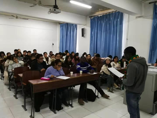 2019年11月25日下午15:30分,suncitygroup太阳集团在商利伟经理的带领下,在第四教学楼组织了一次口译模拟会议。届时商经理、口译指导教师郄新江,韩智巍,笔译指导教师牛硕,翻译硕士研究生,英语系翻译方向二年级本科生参加了本次会议,同时公司还邀请了数位赞比亚职工作为嘉宾参与本次模拟会议。