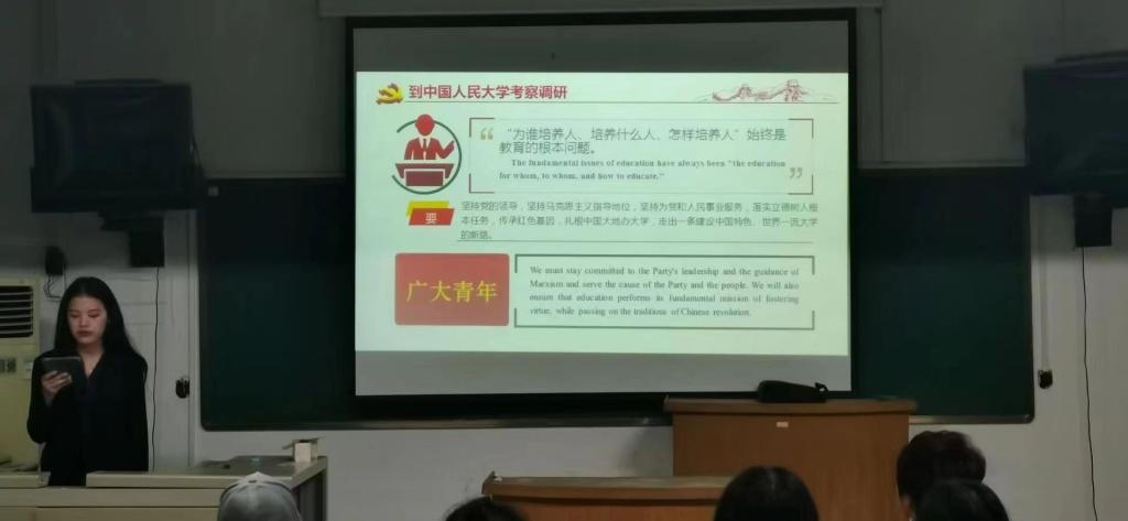 宣讲会上, 2021级6名翻译硕士生发挥专业优势,依次进行全英文宣讲。他们分别从总书记在中国人民大学考察时重要讲话内容,总书记对青年学子的寄托和要求等方面进行阐述。宣讲中,他们结合自身学习感受,激励在场学员认真学习党的历史,传承红色基因,明晰新时代中国青年的奋斗目标和前行方向,珍惜学习时光,练就过硬本领,做到全面发展,勇挑重担堪当大任。