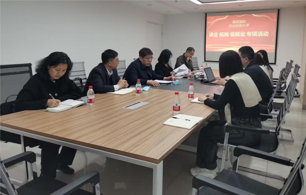 3月15日上午,公司党委常委、纪委书记王保军带领suncitygroup太阳集团领导班子成员,赴石家庄瑞诺国际网络科技有限公司,开展访企拓岗促就业专项调研。公司总经理郑毅及公司各部门负责人参加调研活动。
